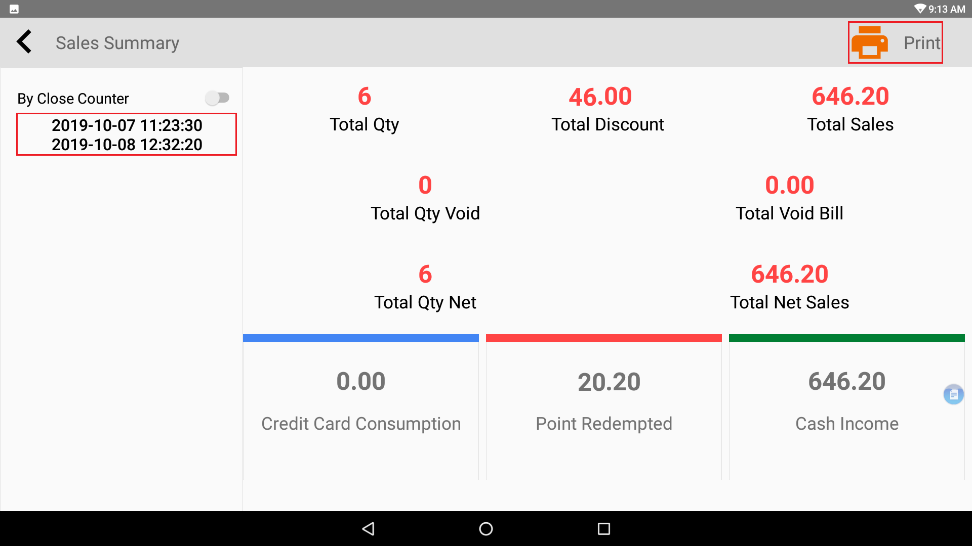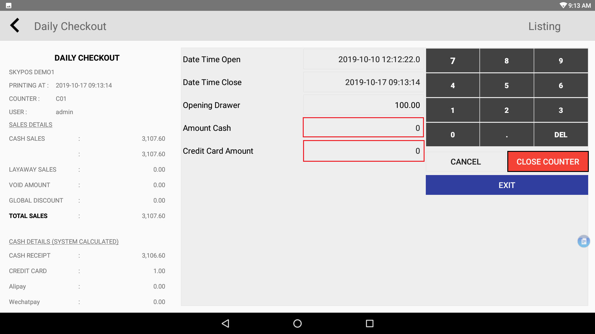 2. Fill the “Amount Cash Column” and “Credit Card Amount Column”