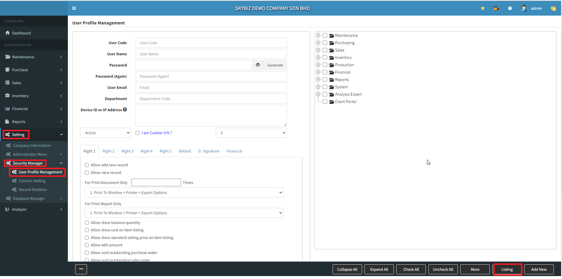 2025-11-19 0803. Security Manager 1.Go to : ” Setting “ >> ” Security Manager “ >> ” User Profile Management “ 2.Go to : ” Listing “ 3. Find the User >> click ” Edit “ 4. Right 3 >>> Data Entries Setting choose Past & Advance setting >>> fill Day(s) In Past & Advance >>> update