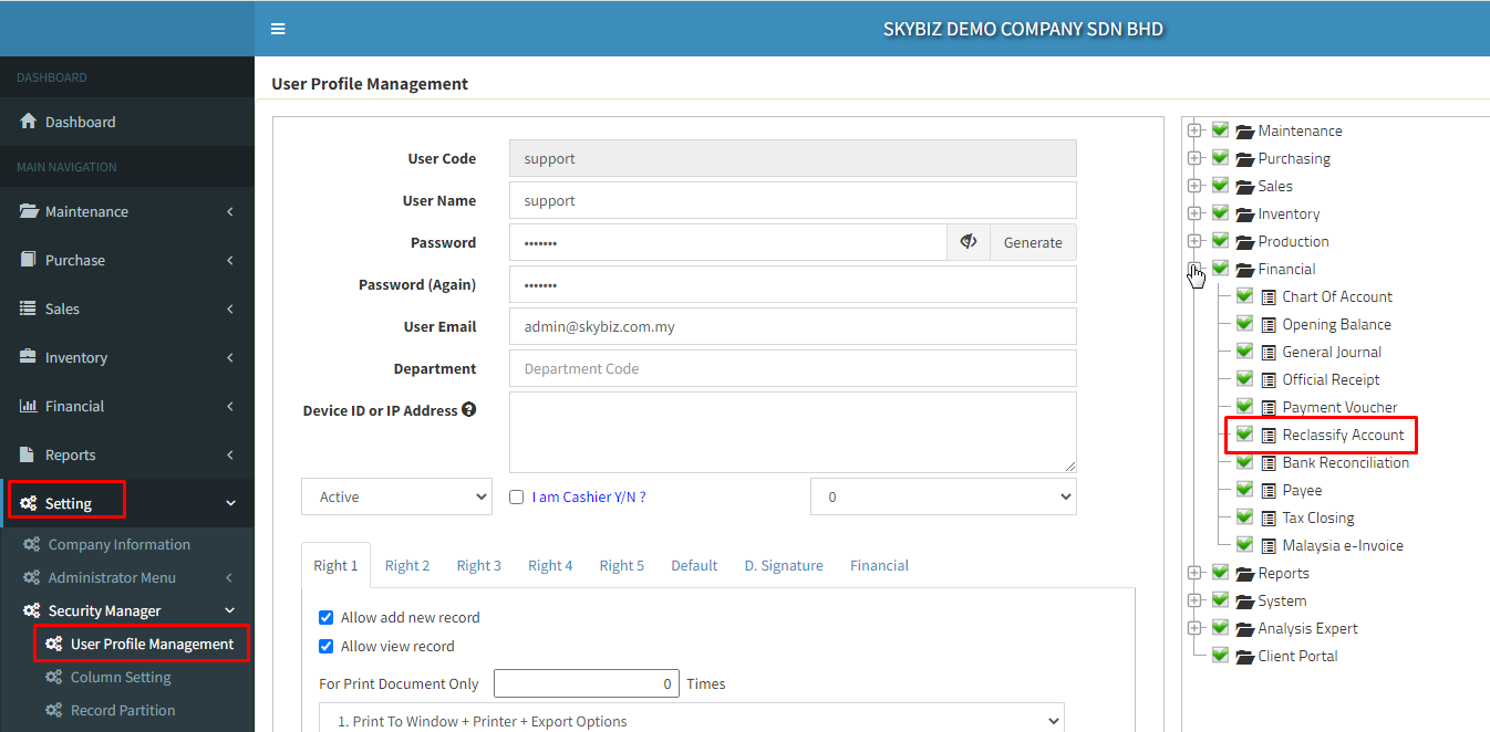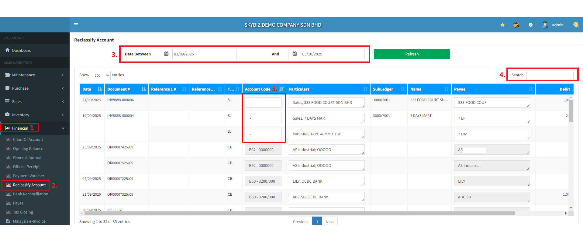 Step 1 : First, make sure your user ID allows to access re-classify account module.