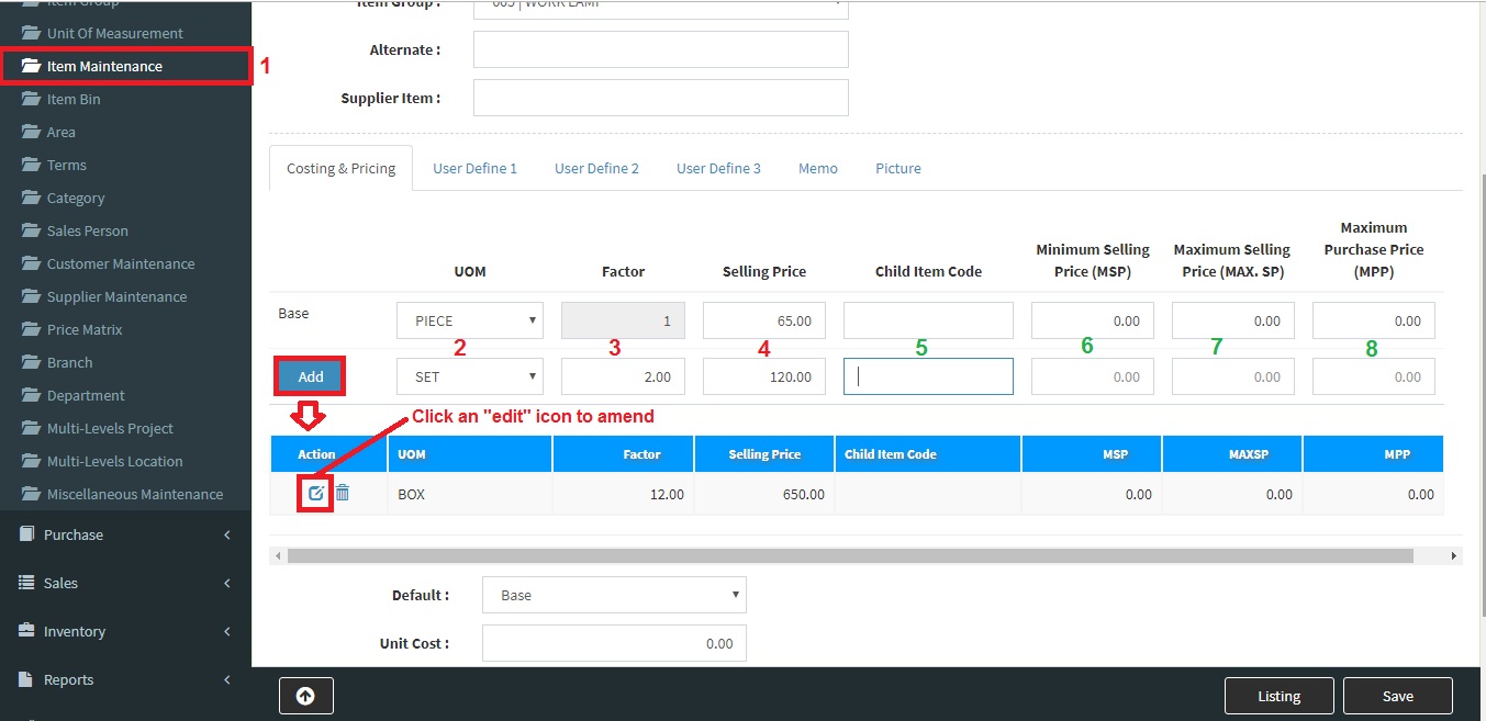 A sell price unit of measure (UOM) is the UOM with which you price items. You can have multiple sell price UOMs for any inventory item.