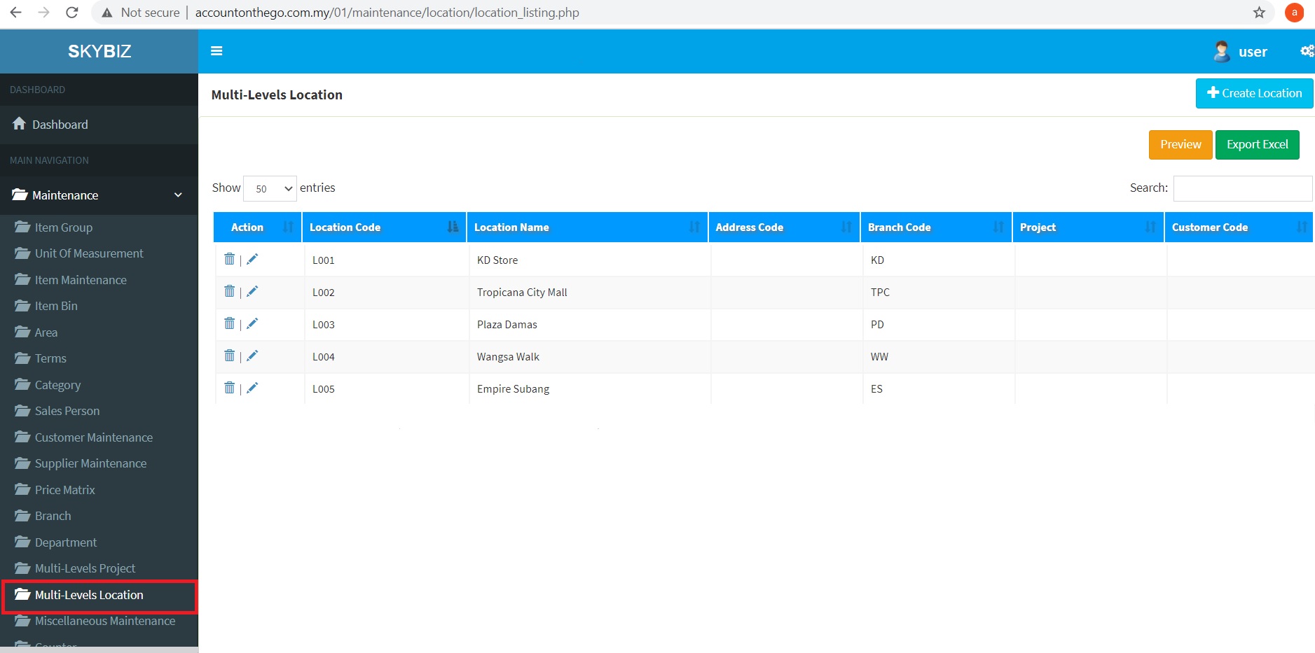- Fill up Location Code, Location Name and click Save to proceed record.