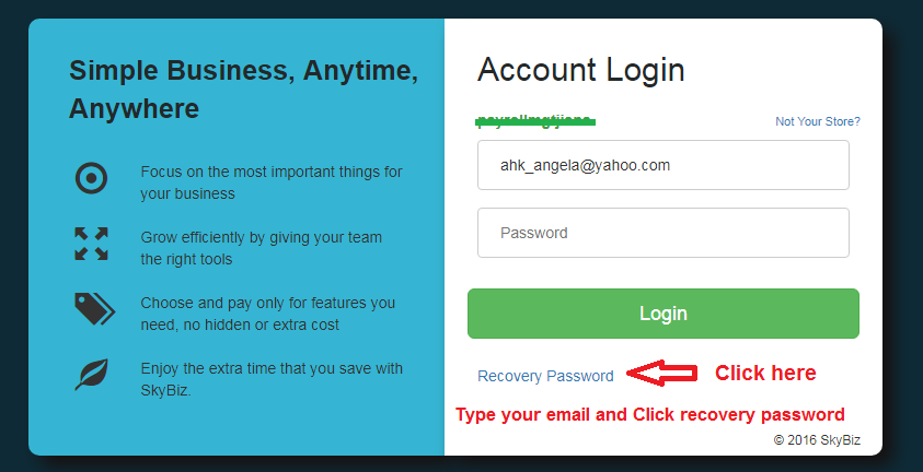 SkyBiz Cloud and SkyBiz E-Leave Password Recovery