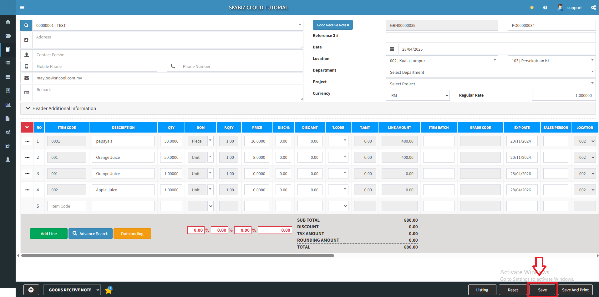 Goods Received Note is a record of goods received that shown as a proof that ordered products had been received. The record is used by the buyer for comparing the number of goods ordered to the ones delivered.