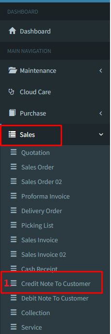 - Go menu Sales>>Credit Note To Customer and click on it.
