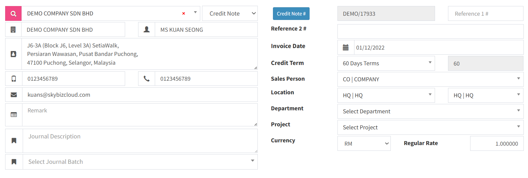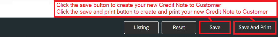 Step 5: Once you have reviewed the details, click the Save button in the bottom-right corner to store your Credit Note. If you require a physical copy right away, please use the Save and Print option to complete both actions at once.