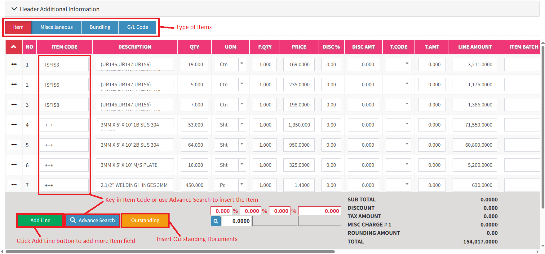 - The Miscellaneous = All non-Inventory Items such as labour charges, transport charges, project services, and more.