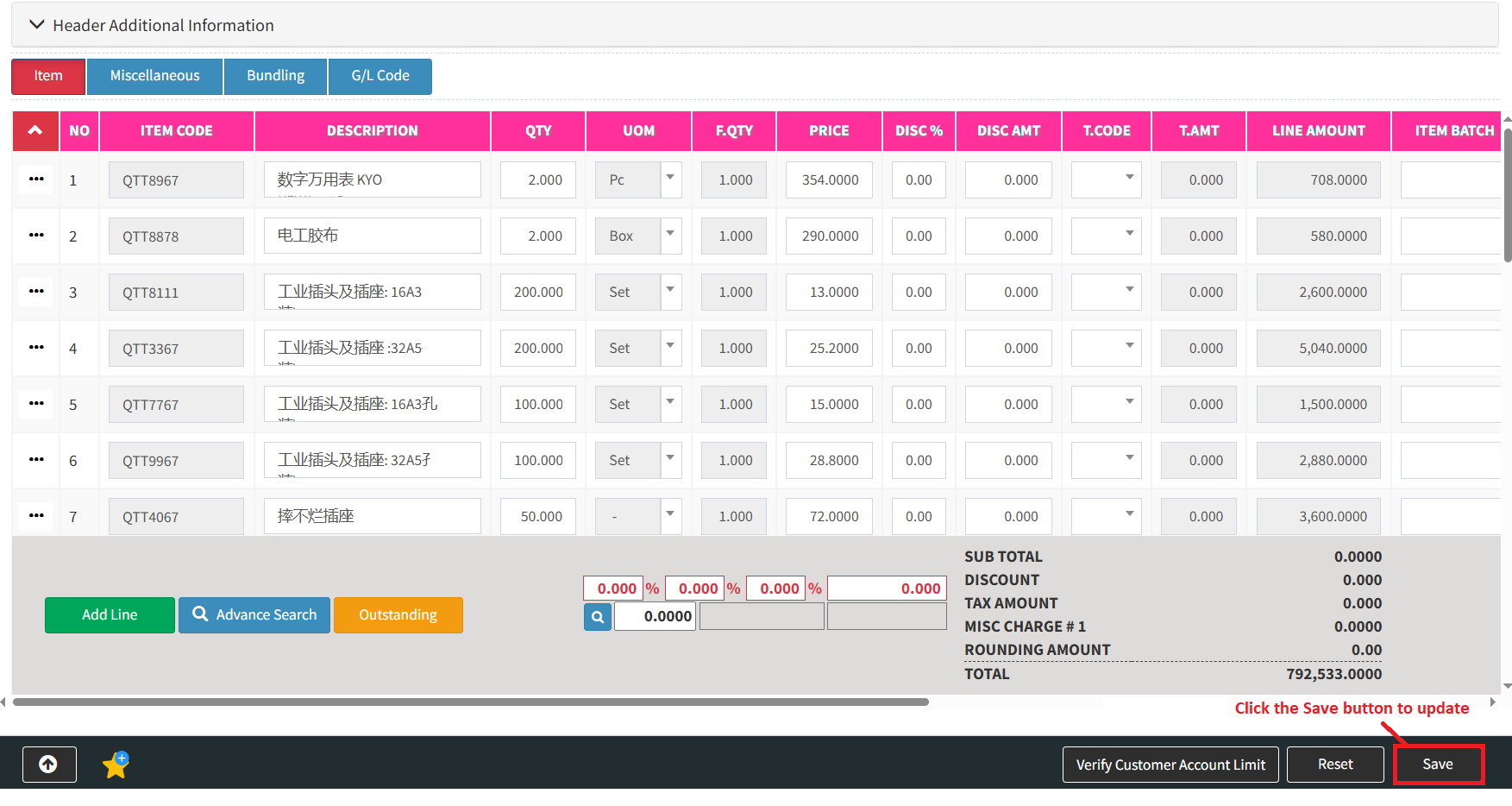 Step 4: After applying your modifications, click the Save button to update the Credit Note to Customer with the new information.