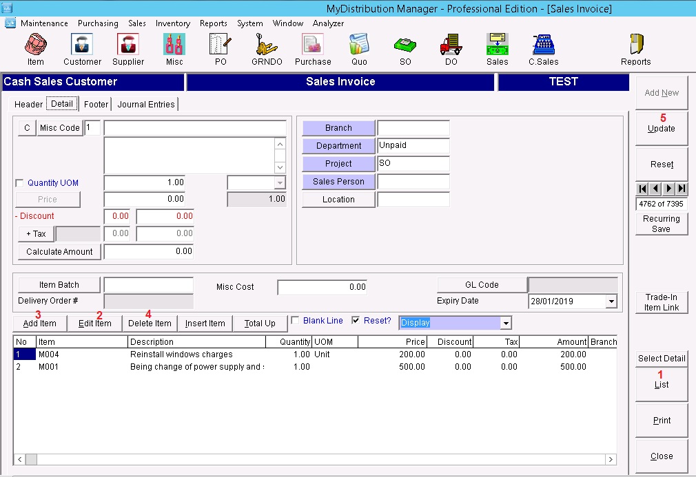 3. Click “Add Item” to get change of your amended price/description/discount amount.