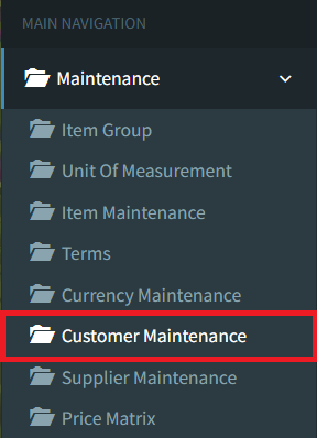 Step 1: To modify a customer, navigate to Maintenance > Customer Maintenance