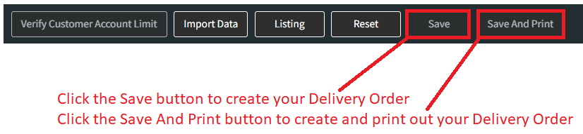 Step 5: On the bottom right, click the Save button to create your delivery order, or click the Save and Print button to create and print your new delivery order simultaneously.