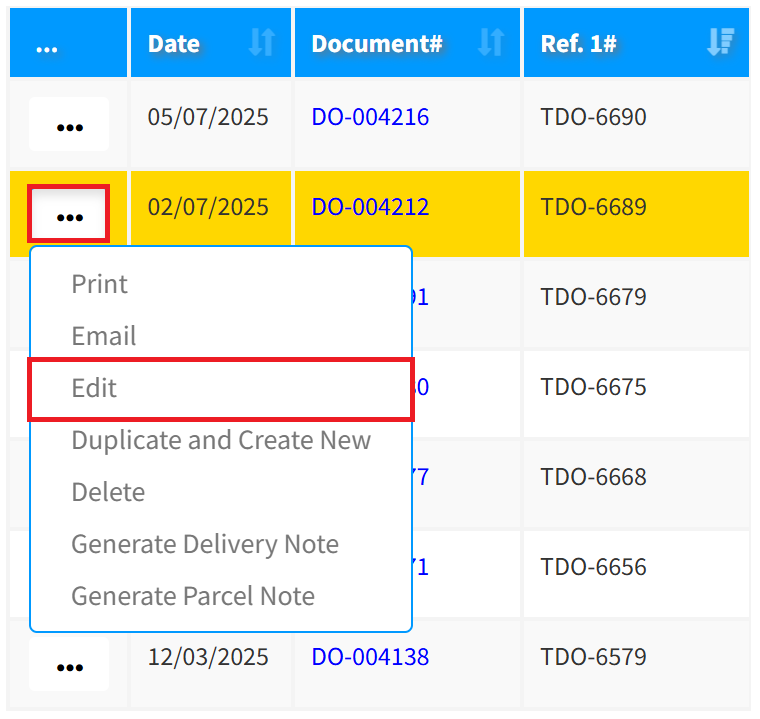 Step 3: Click the 3-Dots icon, then click Edit to modify your delivery order