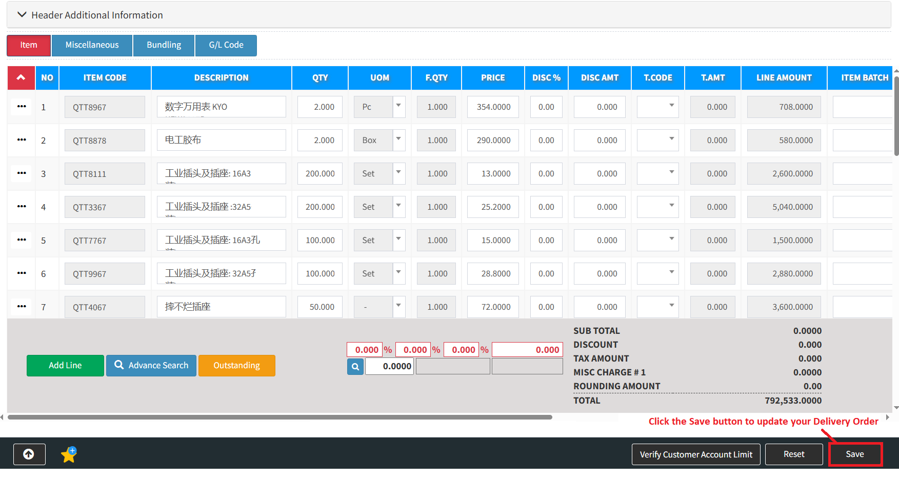 Step 4: After modifying your delivery order, click the Save button to update your delivery order