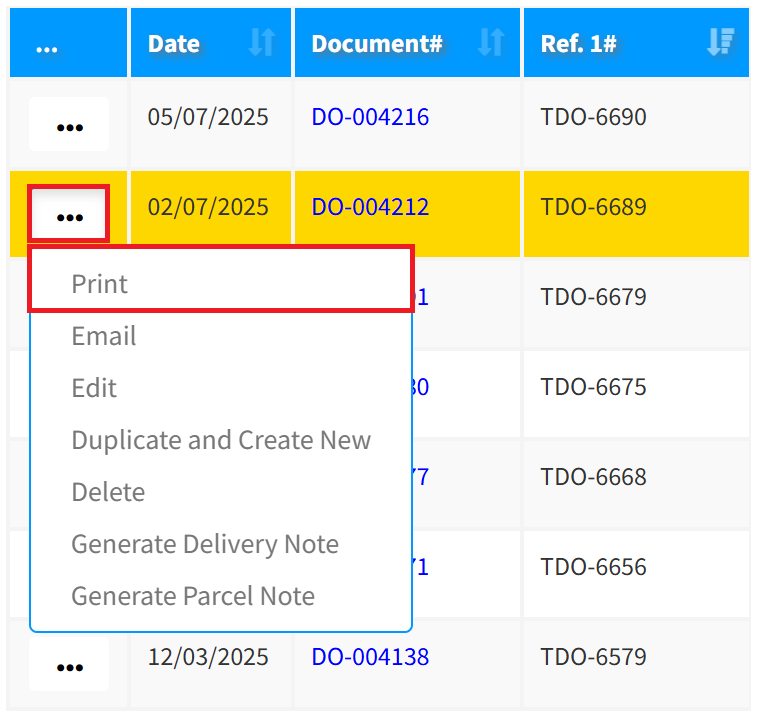 Step 3: Click the 3-Dots icon, then click Print to print out your delivery order