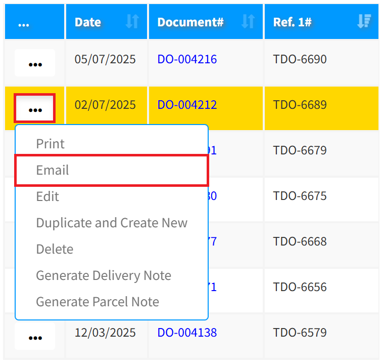 Step 3: Click the 3-Dots icon, then click the Email button to send the Delivery Order to your customer.