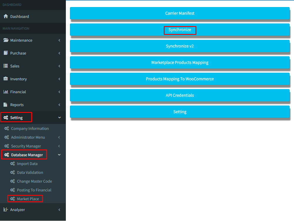 1a: At menu Setting >>> Data Manager >>> Markrt Place >>> Synchronize