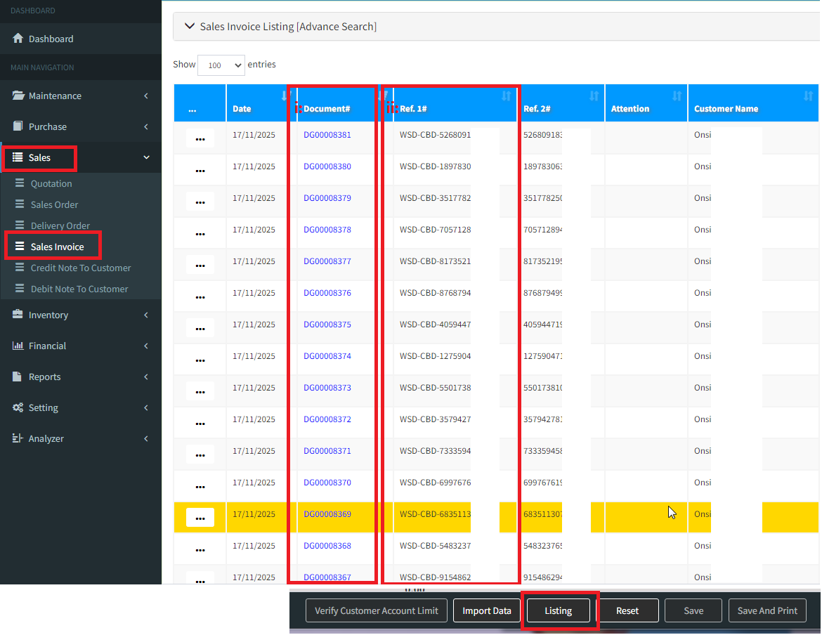3a :At menu go to Sales >>> Sales Invoice >>> Listing