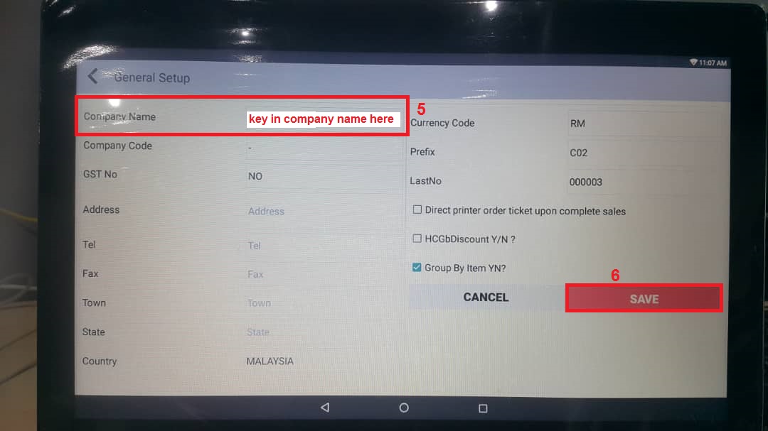 - Key in Company name and other information and Save