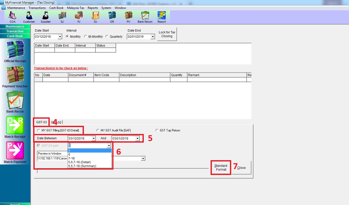 4) Select Type of Report – MY GST Filling [GST 03 Detail]