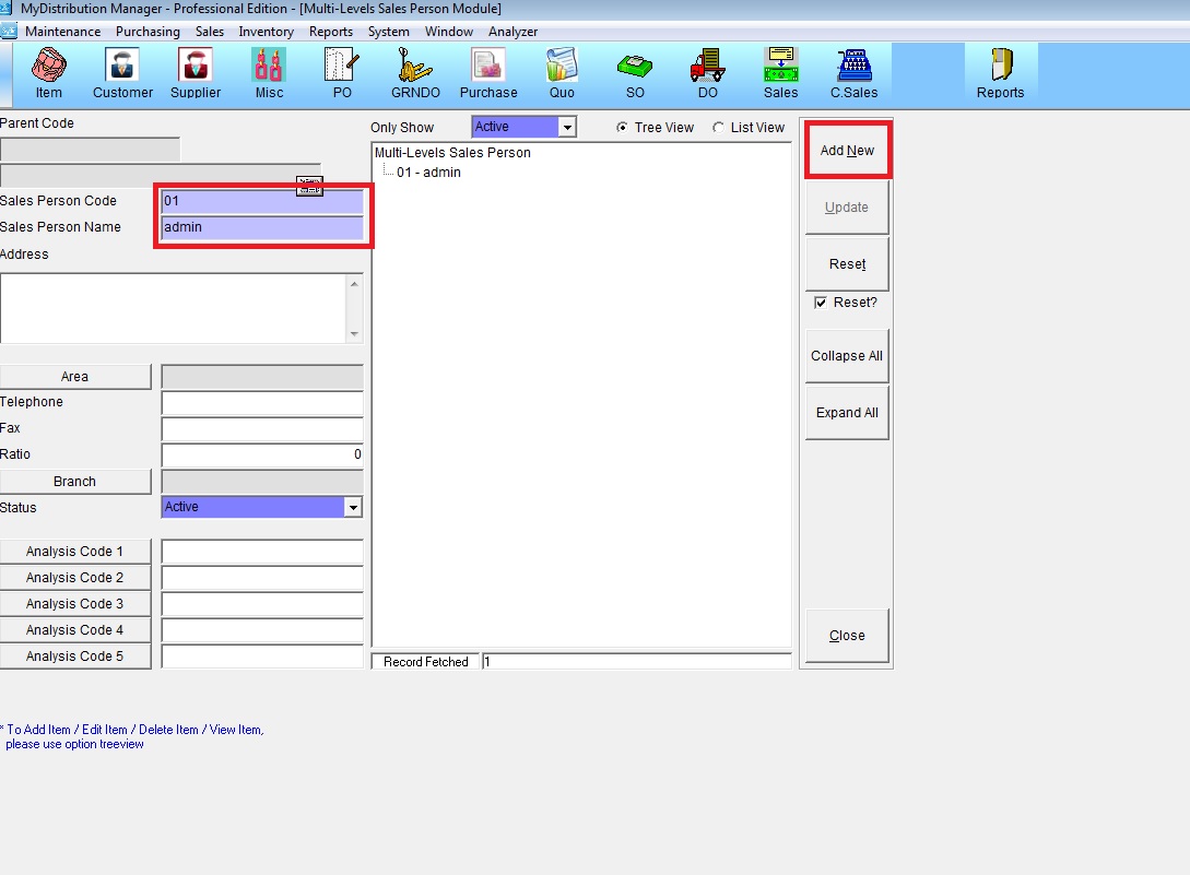 How to Add New Sales Person 2018-11-13 Distribution Below are Guideline(s) on How to Add New Sales Person Step 1 : Go to Maintenance > Multi-Levels Sales Person Step 2 : Key in Sales Person Code and Sales Person Name then Add New