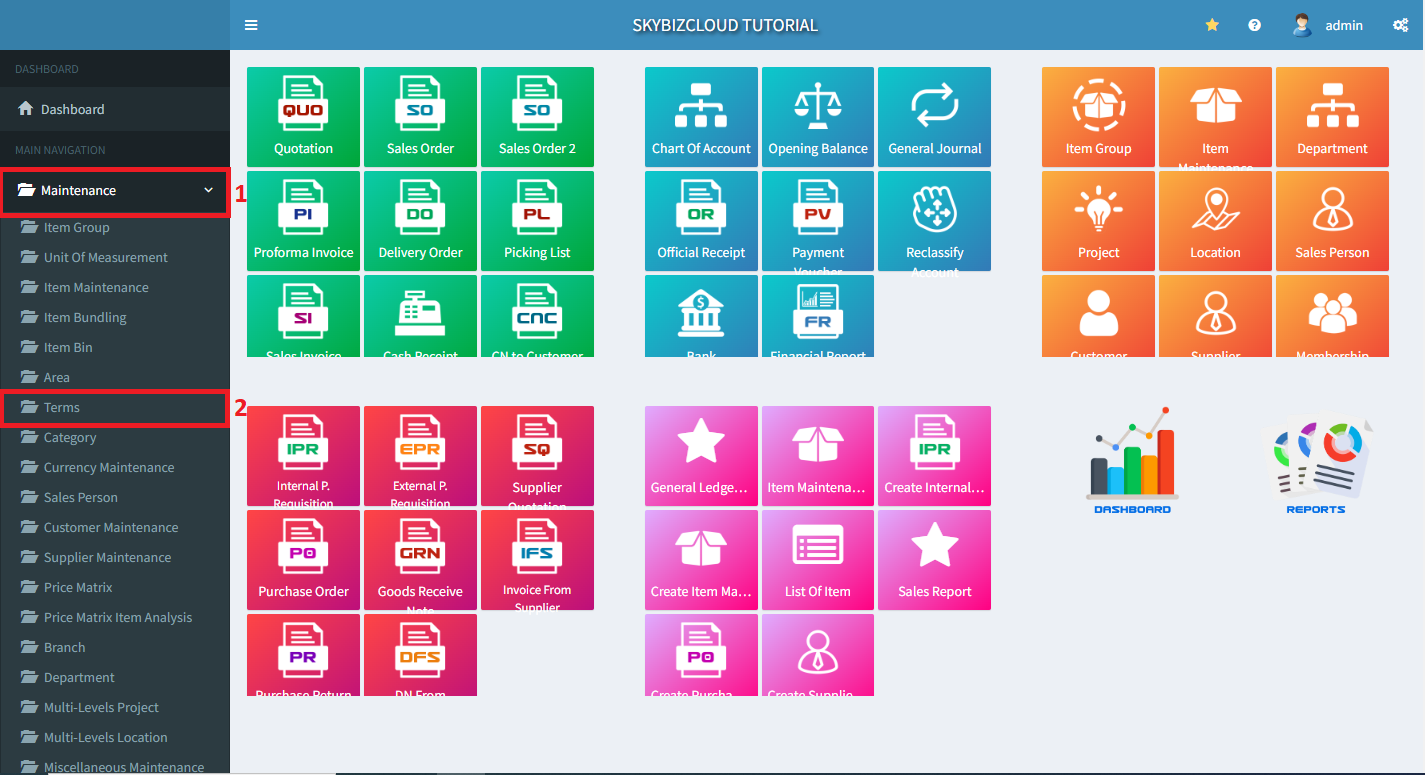 - Tap the main menu ≡ button in the top left corner>>Maintenance>>Terms.