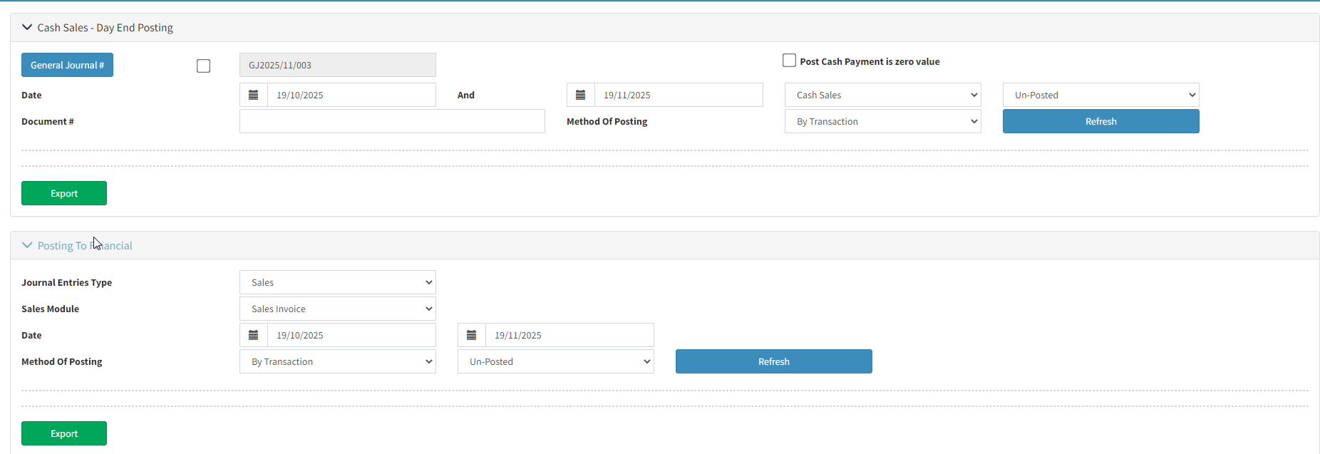 a. Choose Cash Sales-Day End Posting or Posting To Financial