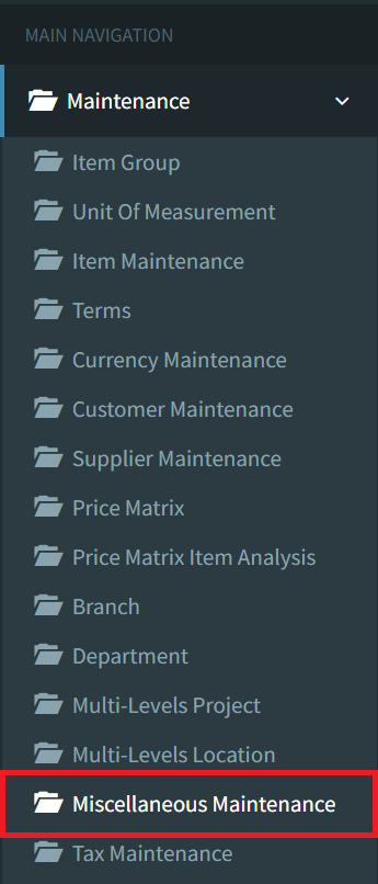 Step 1: To modify a miscellaneous, navigate to Maintenance > Miscellaneous Maintenance
