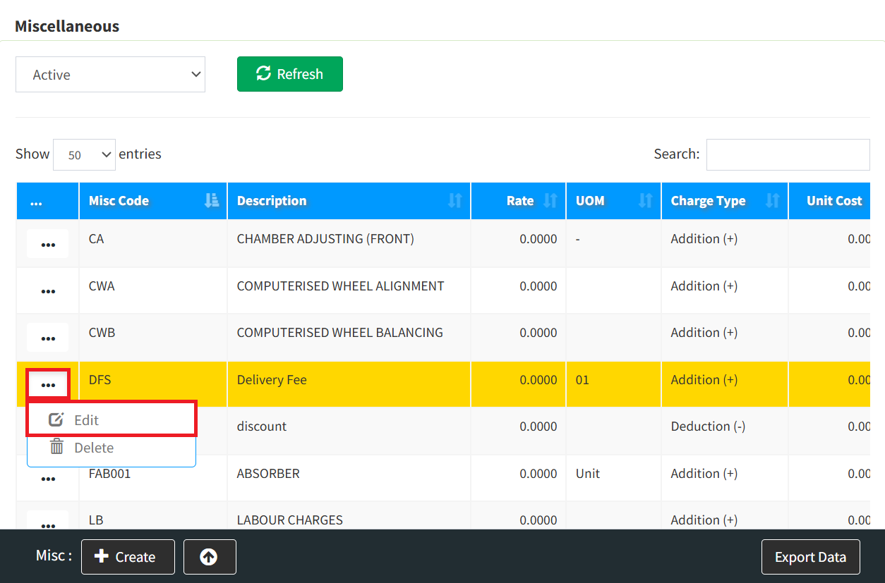 Step 2: Click the 3-Dots icon, then click Edit to modify your miscellaneous