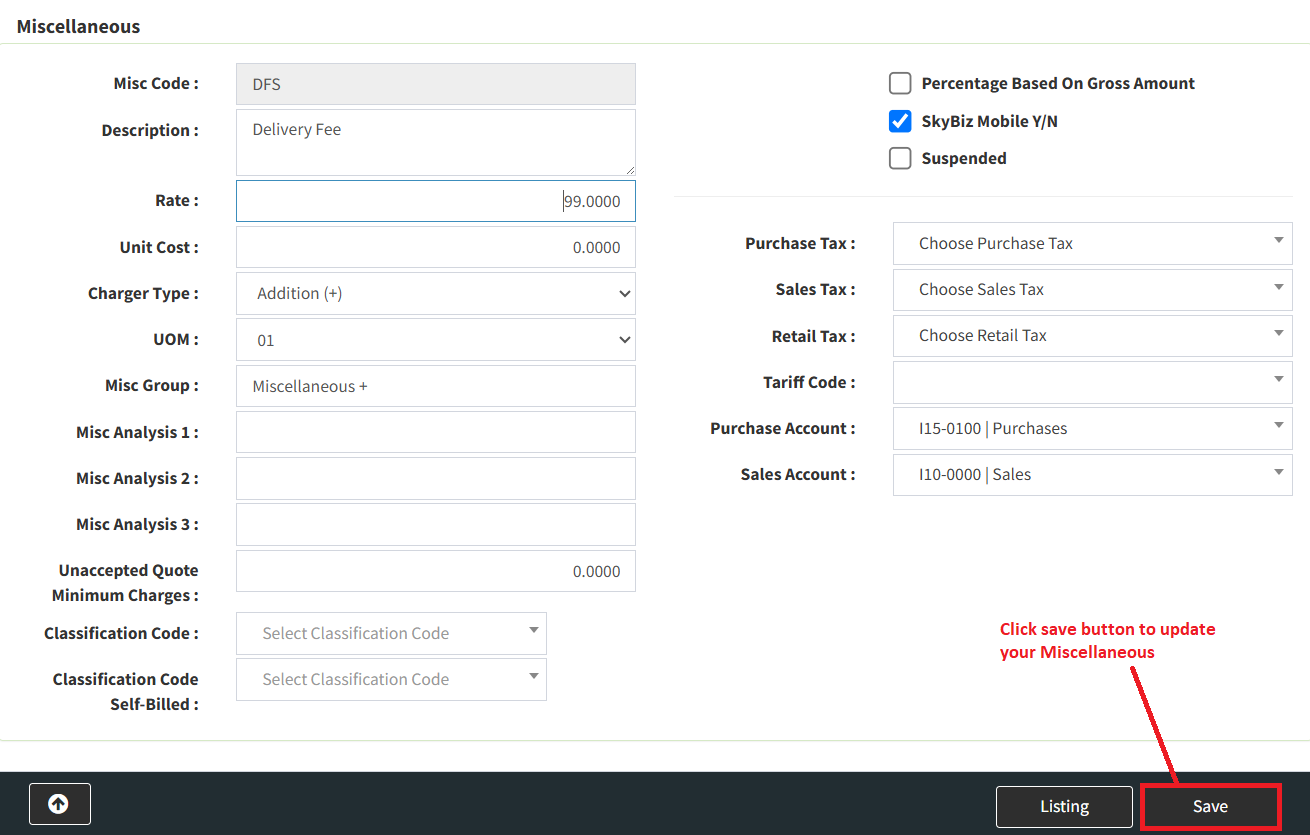 Step 3: After modifying your miscellaneous, click the Save button to update your miscellaneous