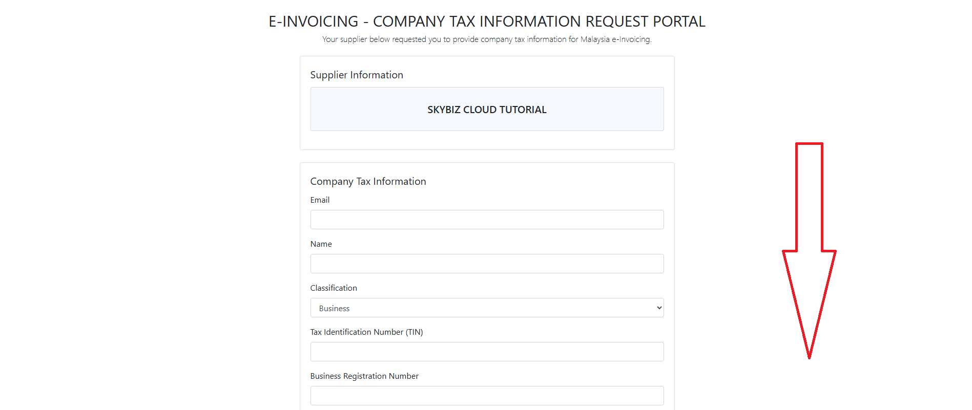 8. After scanning the QR code, you will be directed to E-INVOICING TAX INFORMATION REQUEST PORTAL page.
