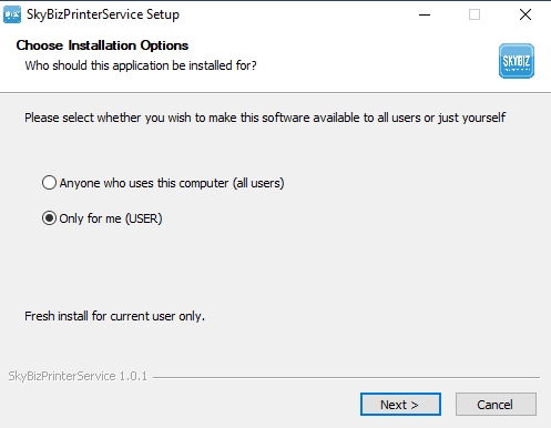 Step 3: Run the installer to install the SKYBIZ Printer Service on the designated workstation or laptop connected to the printer.