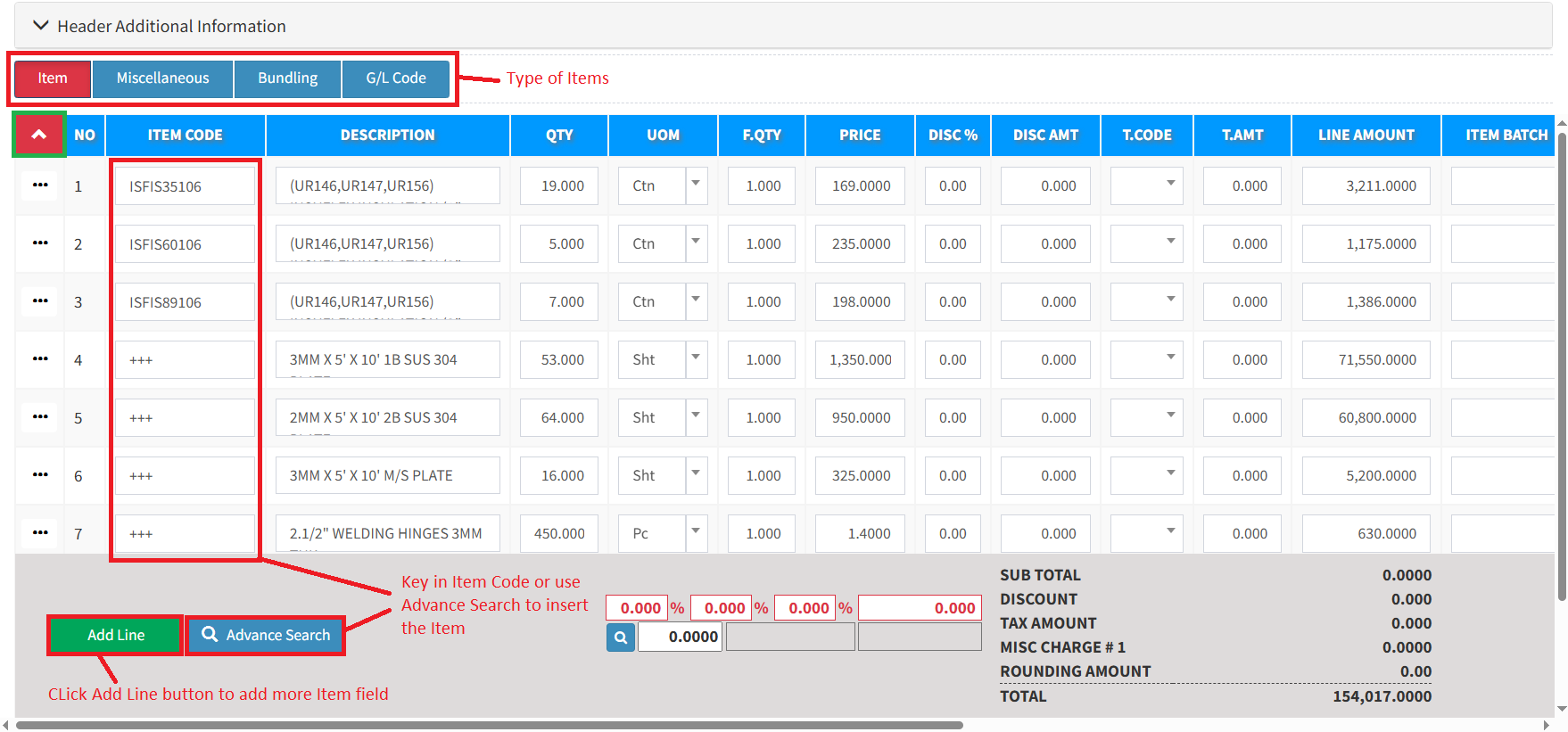 • The Miscellaneous = All non-Inventory Items such as labour charges, transport charges, project services, and more.