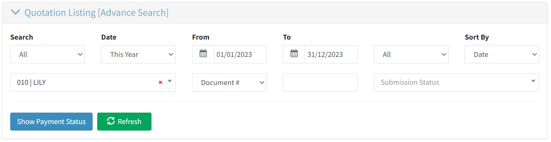 Step 3: Use the Advanced Search to find and filter a specified quotation listing that you want to print, then click the Refresh button.