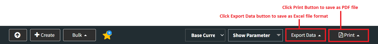 Step 4: Then click the Print button to save your quotation listing as a PDF file or click the Export Data button to save it as an Excel format.