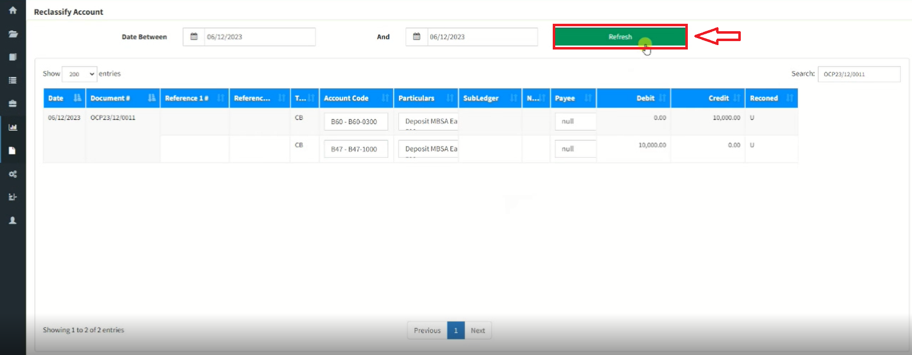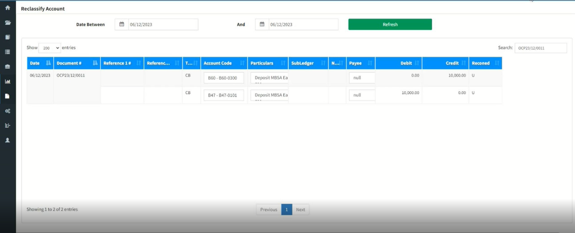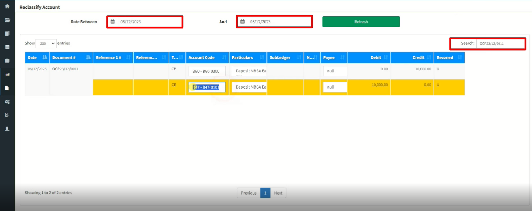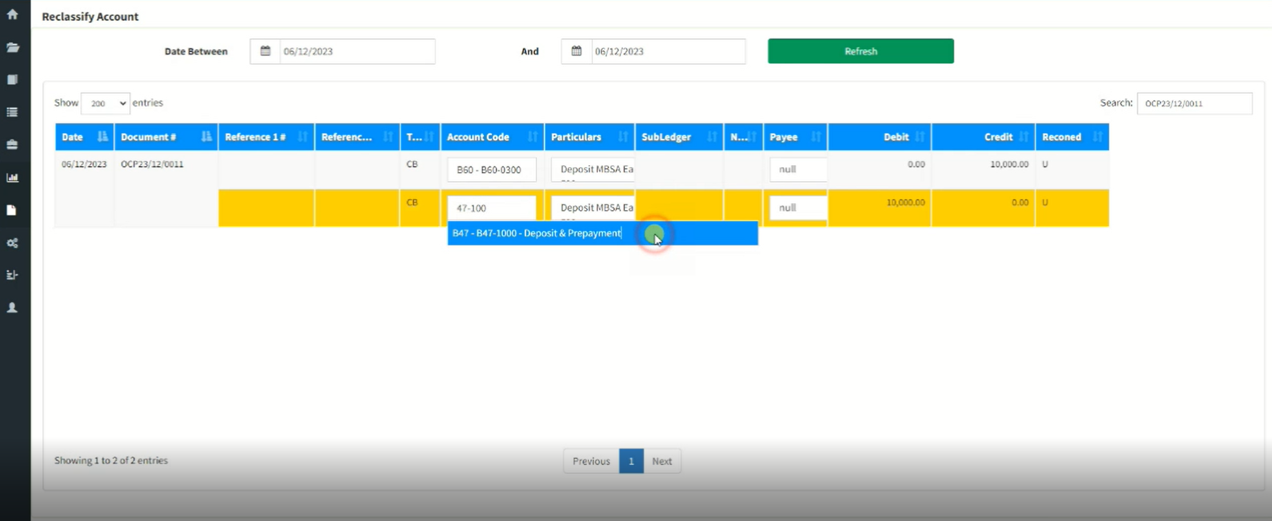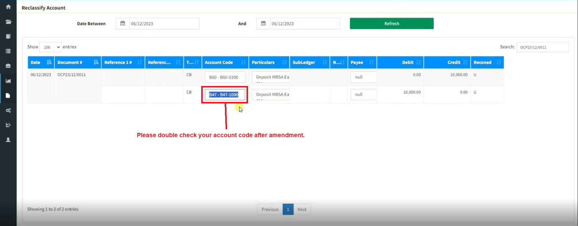 4. Example this payment voucher has debited wrong account code. Then, amend to the right account code.