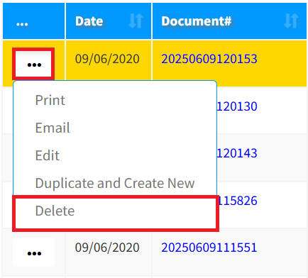 Step 3: Click the 3-Dots icon, then click Delete to remove your sales order