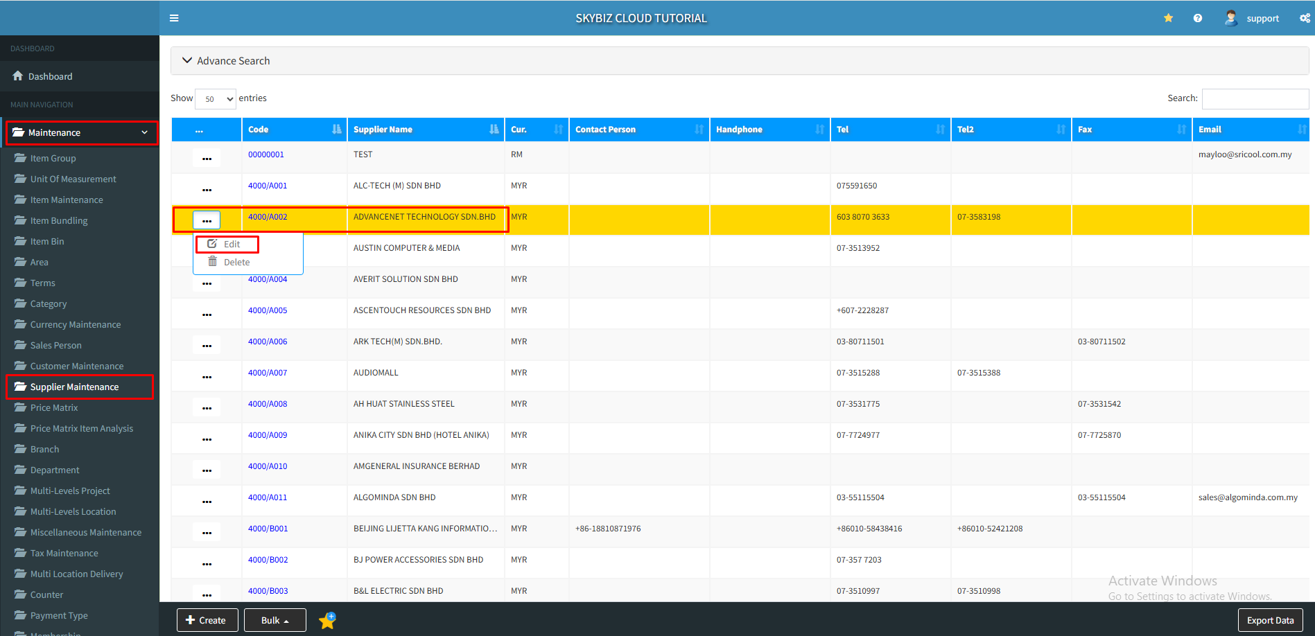 Step 1 : Update Supplier Information go to >> [ Maintenance ] >> [ Supplier Maintenance ] choose the supplier click on 3 (three) dots >> [ Edit ]