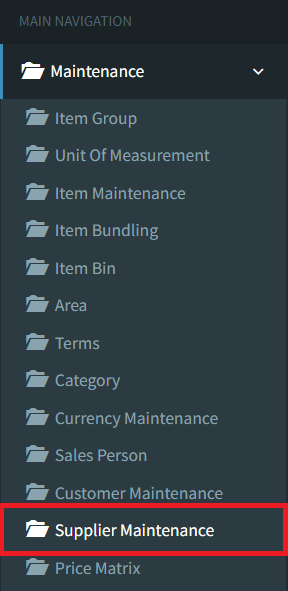 Step 1: To modify a supplier, navigate to Maintenance > Supplier Maintenance