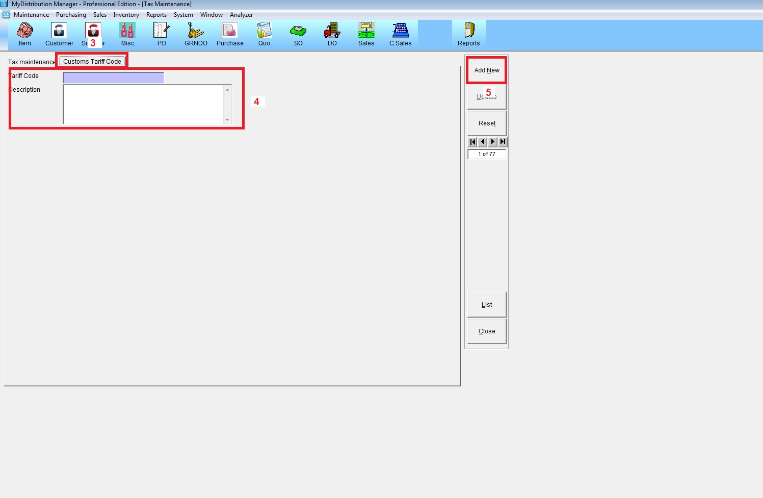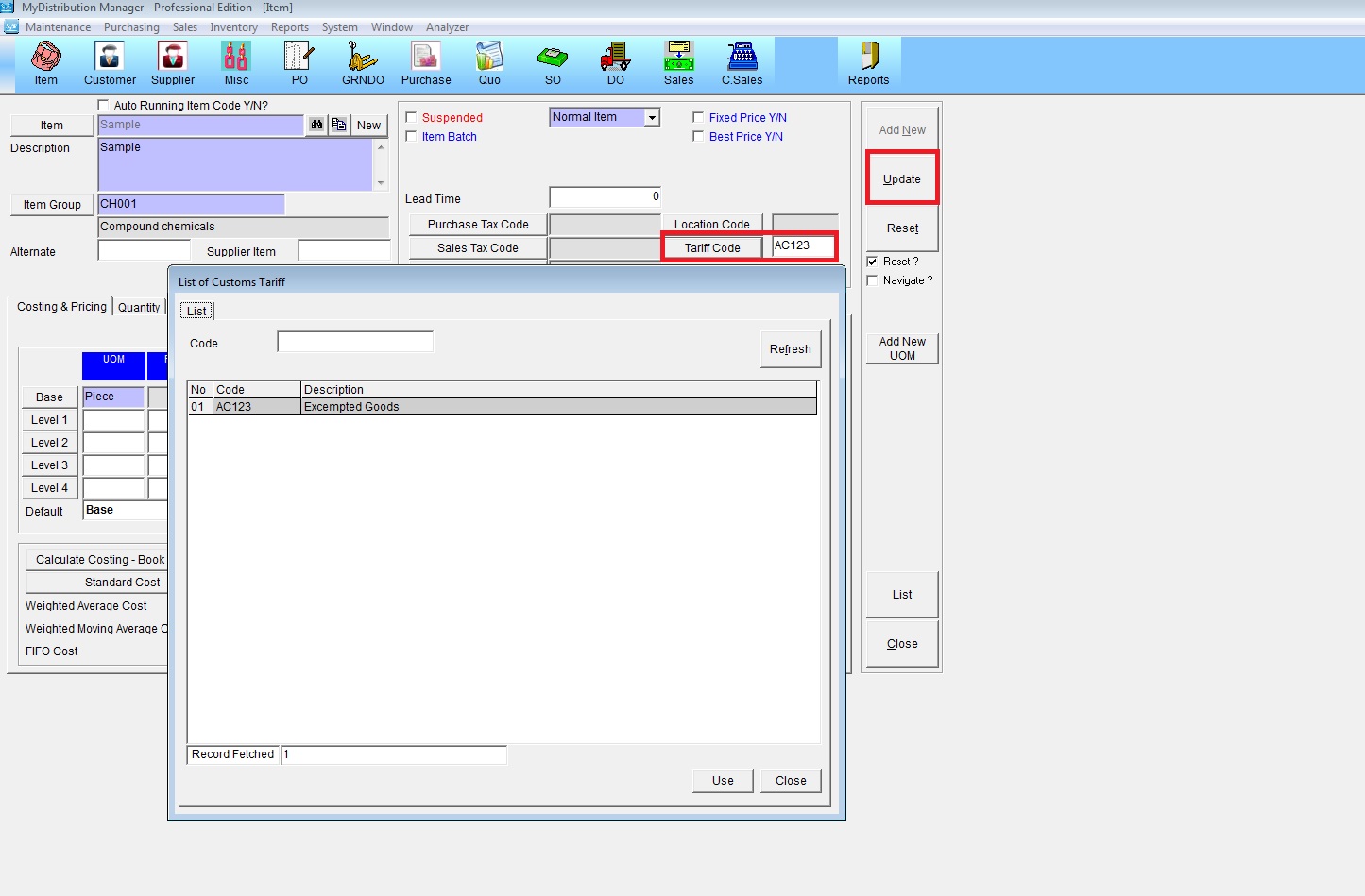 - 3.2) Click Tariff Code to select the tariff code for Misc Code