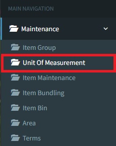 Step 1: To delete a UOM, navigate to Maintenance > Unit of Measurement