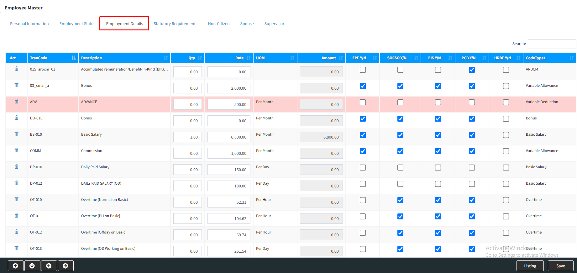 Step 4 : [ Employment Details ] >> Tick 1 or more than 1 benefit(s) that applied to this employee