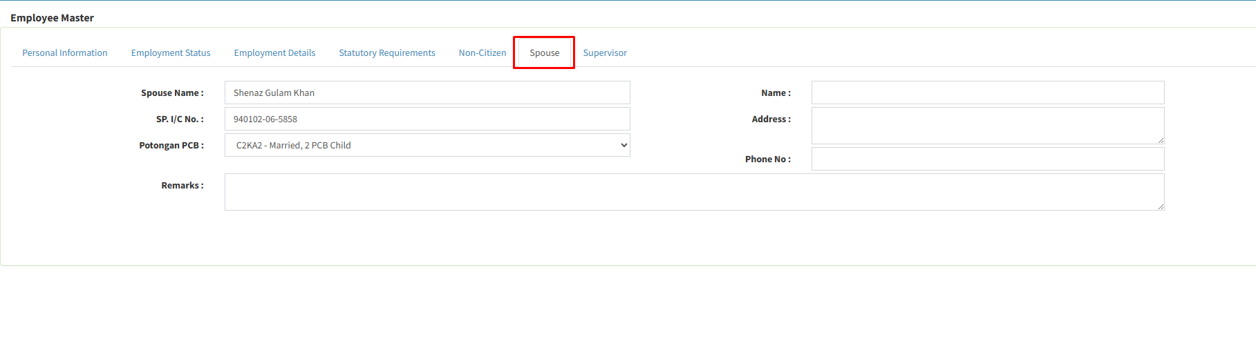 Step 7 : [ Spouse ] >> Spouse’s PCB information