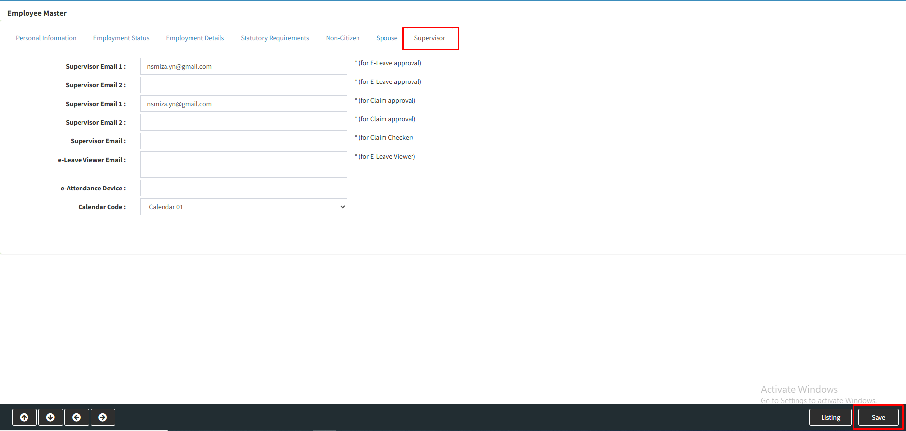 Step 8 : [ Supervisor ] >> Supervisors email to approve employee’s e-Leave >> [ Save ]
