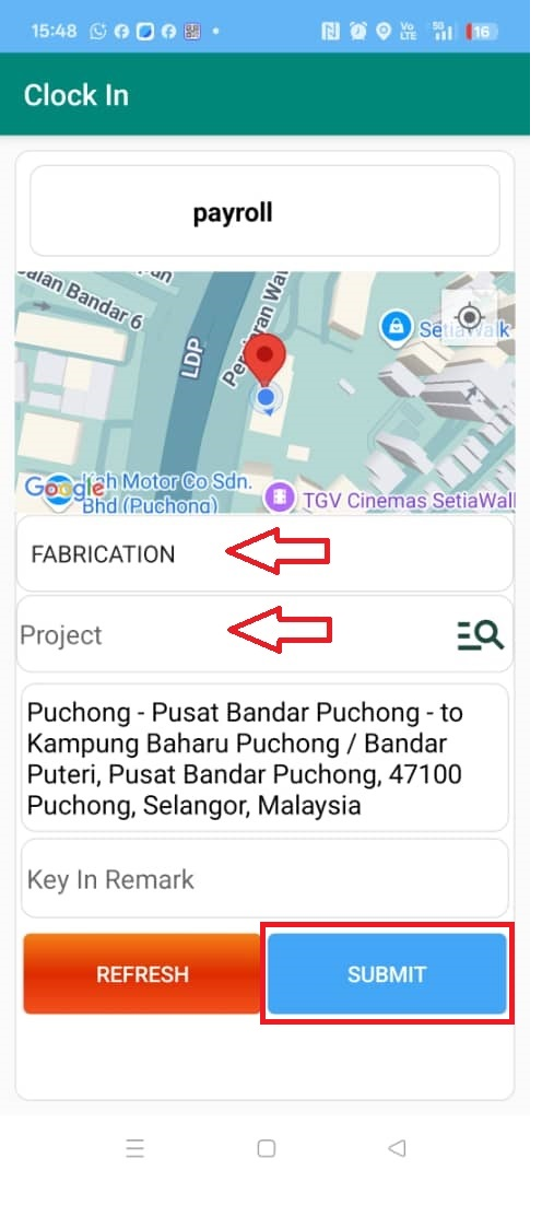 9. Select your Job Type and Project. Last, click “SUBMIT“.