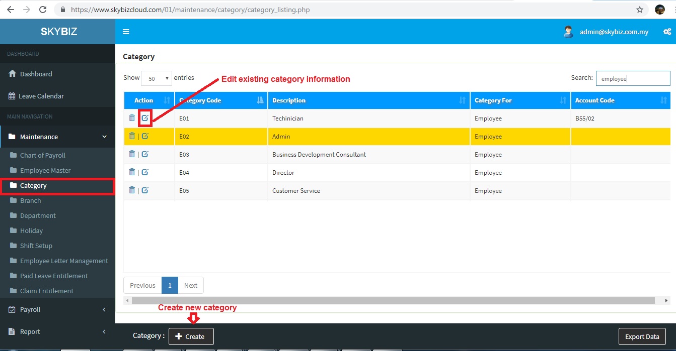 0104. Category, SkyBiz e-Leave