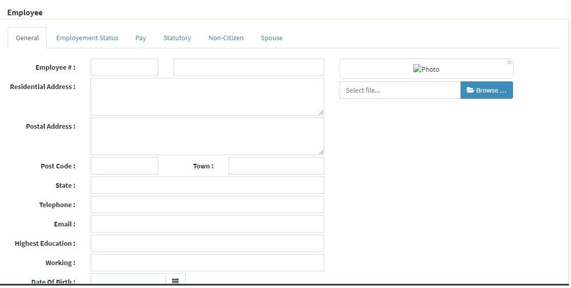 3. Fill up all information in “General” page. Date of Birth is most important information will affect EPF, SOCSO, PCB calculation, thus make sure DOB is correct.