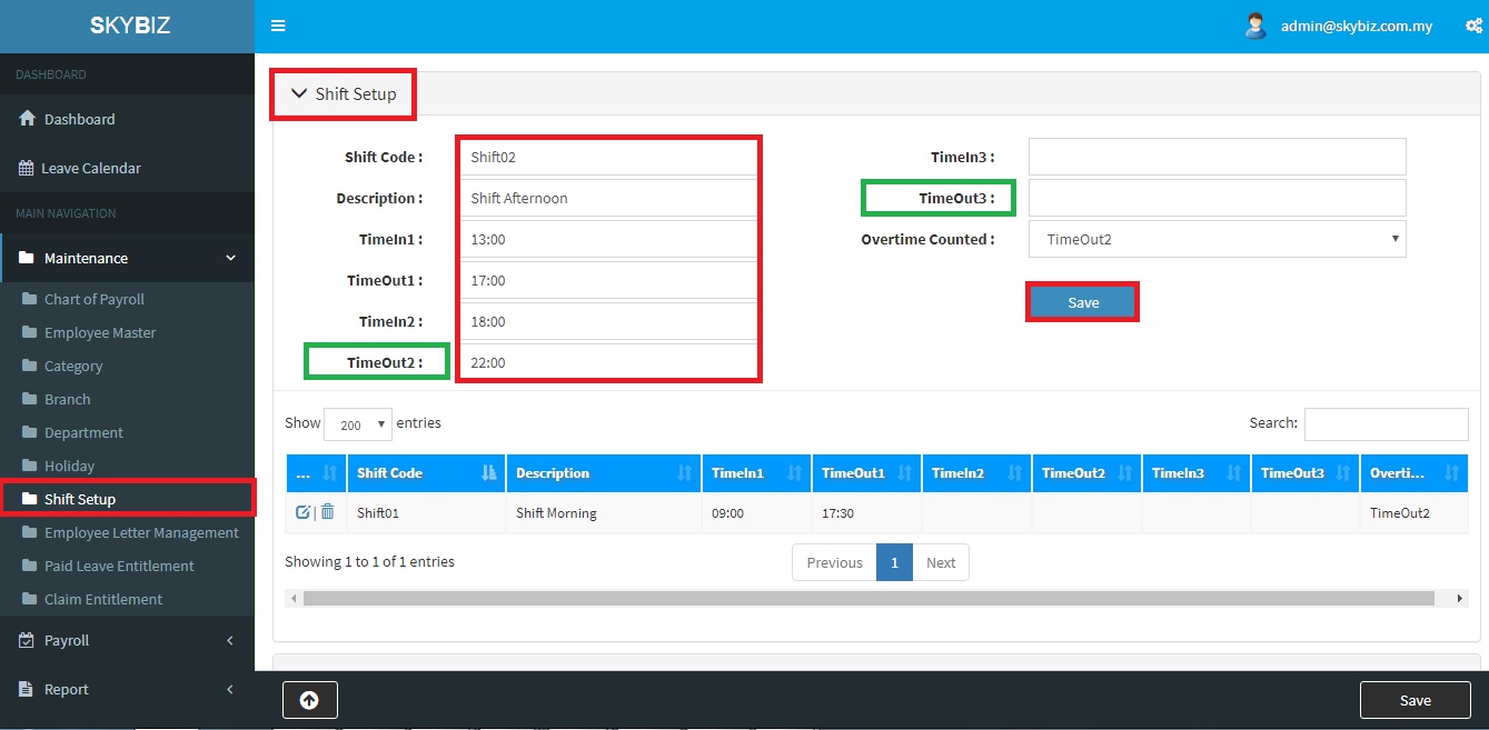 1. Go to “Maintenance>>Shift Setup“.