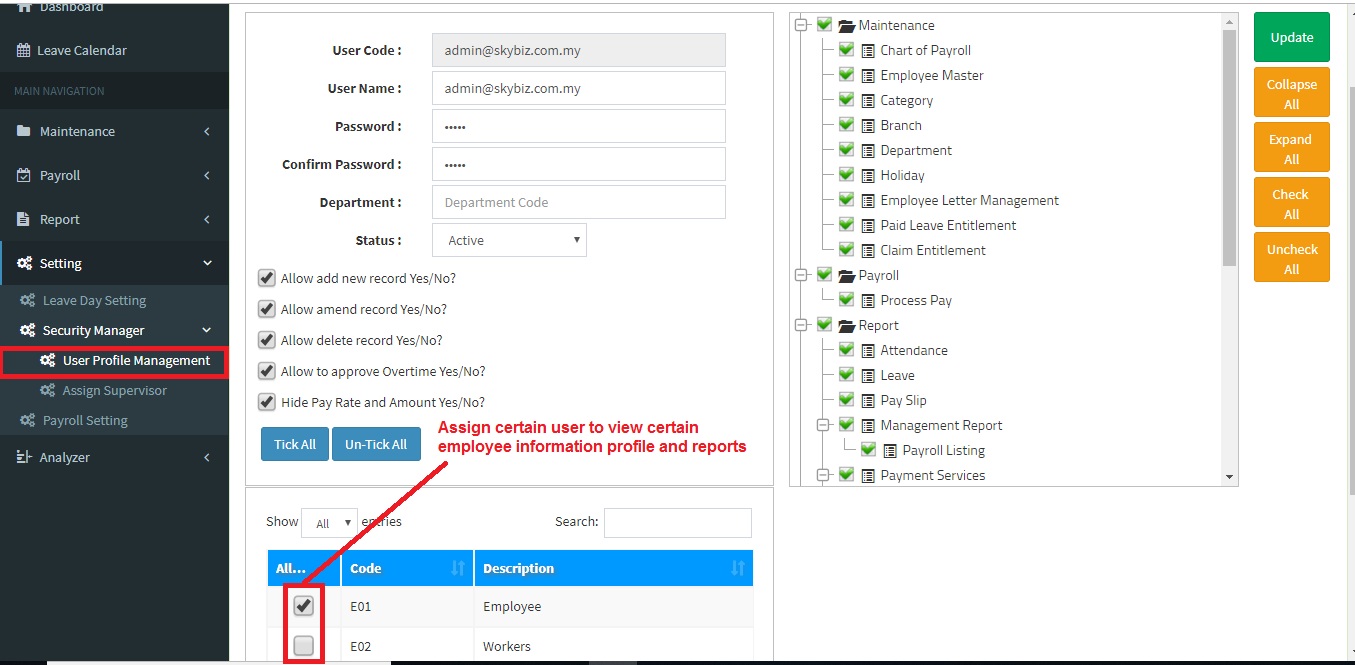 - Go to “Setting>>Security Manager>>User Profile Management“.