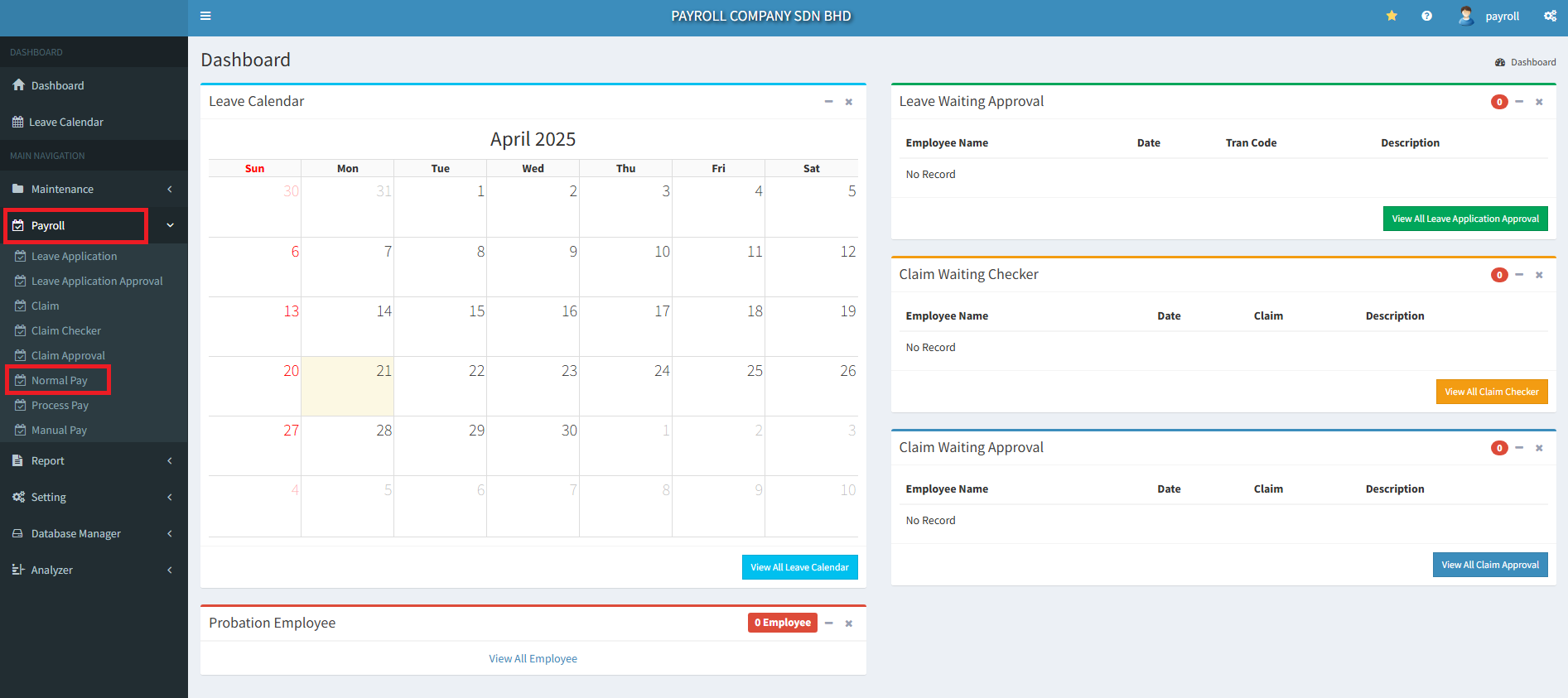 - Login to Payroll Management portal and then go to menu “Payroll >> Normal Pay“.
