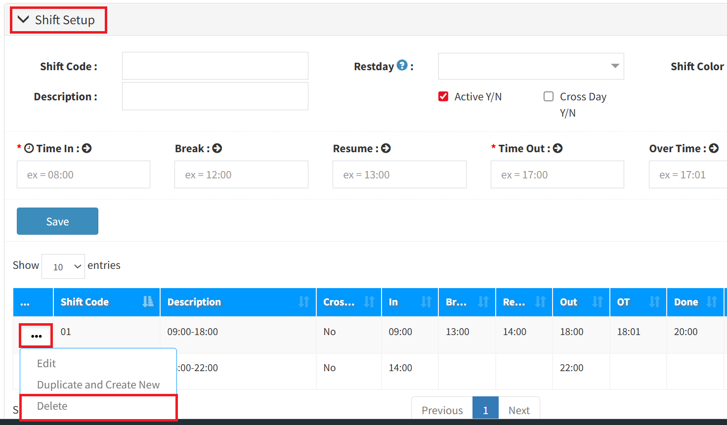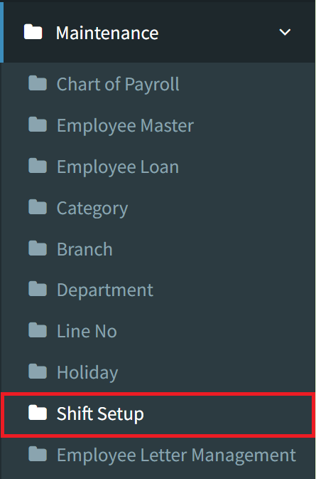 Step 1: To delete the shift time, navigate to Maintenance > Shift Setup