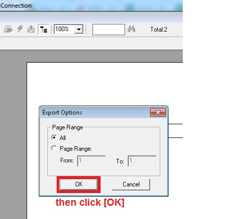 2. Below pop-up message box appear to allow user to choose the page range to export.